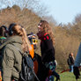 Vagtskiftet ved Marselisborg Slot skærtorsdag kl. 12 tiltrak mange fremmødte, mens politiets indsatsleder undervejs tog sig tid til at besvare spørgsmål fra en nysgerrig dreng.
