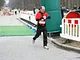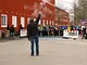 Vagtskiftet ved Marselisborg Slot skærtorsdag kl. 12 tiltrak mange fremmødte, mens politiets indsatsleder undervejs tog sig tid til at besvare spørgsmål fra en nysgerrig dreng.