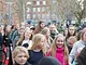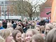 Vagtskiftet ved Marselisborg Slot skærtorsdag kl. 12 tiltrak mange fremmødte, mens politiets indsatsleder undervejs tog sig tid til at besvare spørgsmål fra en nysgerrig dreng.