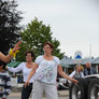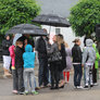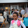 Vagtskiftet ved Marselisborg Slot skærtorsdag kl. 12 tiltrak mange fremmødte, mens politiets indsatsleder undervejs tog sig tid til at besvare spørgsmål fra en nysgerrig dreng.