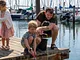 Vagtskiftet ved Marselisborg Slot skærtorsdag kl. 12 tiltrak mange fremmødte, mens politiets indsatsleder undervejs tog sig tid til at besvare spørgsmål fra en nysgerrig dreng.