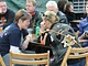 Vagtskiftet ved Marselisborg Slot skærtorsdag kl. 12 tiltrak mange fremmødte, mens politiets indsatsleder undervejs tog sig tid til at besvare spørgsmål fra en nysgerrig dreng.
