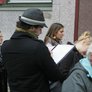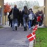 Vagtskiftet ved Marselisborg Slot skærtorsdag kl. 12 tiltrak mange fremmødte, mens politiets indsatsleder undervejs tog sig tid til at besvare spørgsmål fra en nysgerrig dreng.