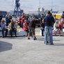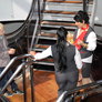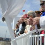 Vagtskiftet ved Marselisborg Slot skærtorsdag kl. 12 tiltrak mange fremmødte, mens politiets indsatsleder undervejs tog sig tid til at besvare spørgsmål fra en nysgerrig dreng.