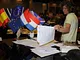Vagtskiftet ved Marselisborg Slot skærtorsdag kl. 12 tiltrak mange fremmødte, mens politiets indsatsleder undervejs tog sig tid til at besvare spørgsmål fra en nysgerrig dreng.