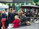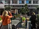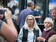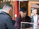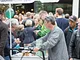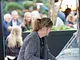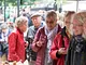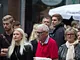 Vagtskiftet ved Marselisborg Slot skærtorsdag kl. 12 tiltrak mange fremmødte, mens politiets indsatsleder undervejs tog sig tid til at besvare spørgsmål fra en nysgerrig dreng.