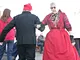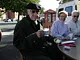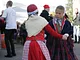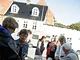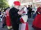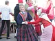 Vagtskiftet ved Marselisborg Slot skærtorsdag kl. 12 tiltrak mange fremmødte, mens politiets indsatsleder undervejs tog sig tid til at besvare spørgsmål fra en nysgerrig dreng.