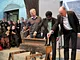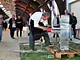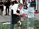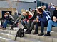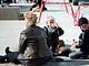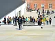 Vagtskiftet ved Marselisborg Slot skærtorsdag kl. 12 tiltrak mange fremmødte, mens politiets indsatsleder undervejs tog sig tid til at besvare spørgsmål fra en nysgerrig dreng.