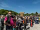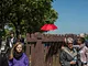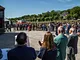 Vagtskiftet ved Marselisborg Slot skærtorsdag kl. 12 tiltrak mange fremmødte, mens politiets indsatsleder undervejs tog sig tid til at besvare spørgsmål fra en nysgerrig dreng.