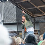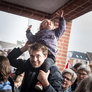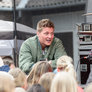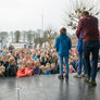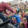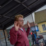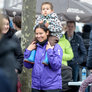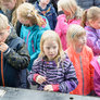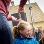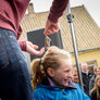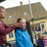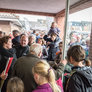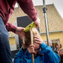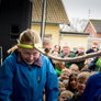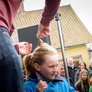 Vagtskiftet ved Marselisborg Slot skærtorsdag kl. 12 tiltrak mange fremmødte, mens politiets indsatsleder undervejs tog sig tid til at besvare spørgsmål fra en nysgerrig dreng.