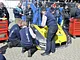 Vagtskiftet ved Marselisborg Slot skærtorsdag kl. 12 tiltrak mange fremmødte, mens politiets indsatsleder undervejs tog sig tid til at besvare spørgsmål fra en nysgerrig dreng.