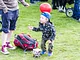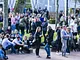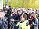 Vagtskiftet ved Marselisborg Slot skærtorsdag kl. 12 tiltrak mange fremmødte, mens politiets indsatsleder undervejs tog sig tid til at besvare spørgsmål fra en nysgerrig dreng.