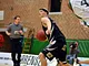 Vagtskiftet ved Marselisborg Slot skærtorsdag kl. 12 tiltrak mange fremmødte, mens politiets indsatsleder undervejs tog sig tid til at besvare spørgsmål fra en nysgerrig dreng.
