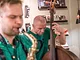 Vagtskiftet ved Marselisborg Slot skærtorsdag kl. 12 tiltrak mange fremmødte, mens politiets indsatsleder undervejs tog sig tid til at besvare spørgsmål fra en nysgerrig dreng.