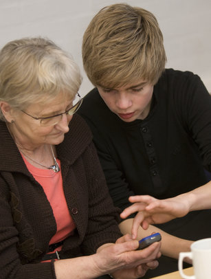 Unge fra Friisenborg Efterskole i Hammel lærer ældre at sende SMSer