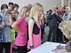 Vagtskiftet ved Marselisborg Slot skærtorsdag kl. 12 tiltrak mange fremmødte, mens politiets indsatsleder undervejs tog sig tid til at besvare spørgsmål fra en nysgerrig dreng.