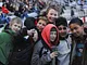 Vagtskiftet ved Marselisborg Slot skærtorsdag kl. 12 tiltrak mange fremmødte, mens politiets indsatsleder undervejs tog sig tid til at besvare spørgsmål fra en nysgerrig dreng.