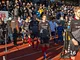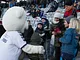 Vagtskiftet ved Marselisborg Slot skærtorsdag kl. 12 tiltrak mange fremmødte, mens politiets indsatsleder undervejs tog sig tid til at besvare spørgsmål fra en nysgerrig dreng.