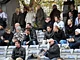 Vagtskiftet ved Marselisborg Slot skærtorsdag kl. 12 tiltrak mange fremmødte, mens politiets indsatsleder undervejs tog sig tid til at besvare spørgsmål fra en nysgerrig dreng.