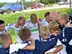 Vagtskiftet ved Marselisborg Slot skærtorsdag kl. 12 tiltrak mange fremmødte, mens politiets indsatsleder undervejs tog sig tid til at besvare spørgsmål fra en nysgerrig dreng.