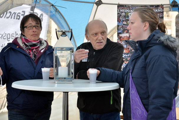 AGF Fanklub fyldte 20 år og det blev fejret på Store Torv i Aarhus med varme kakao og kage.