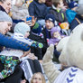 Vagtskiftet ved Marselisborg Slot skærtorsdag kl. 12 tiltrak mange fremmødte, mens politiets indsatsleder undervejs tog sig tid til at besvare spørgsmål fra en nysgerrig dreng.