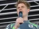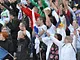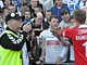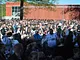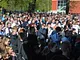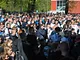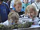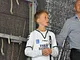 Vagtskiftet ved Marselisborg Slot skærtorsdag kl. 12 tiltrak mange fremmødte, mens politiets indsatsleder undervejs tog sig tid til at besvare spørgsmål fra en nysgerrig dreng.