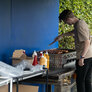 Vagtskiftet ved Marselisborg Slot skærtorsdag kl. 12 tiltrak mange fremmødte, mens politiets indsatsleder undervejs tog sig tid til at besvare spørgsmål fra en nysgerrig dreng.