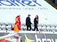Vagtskiftet ved Marselisborg Slot skærtorsdag kl. 12 tiltrak mange fremmødte, mens politiets indsatsleder undervejs tog sig tid til at besvare spørgsmål fra en nysgerrig dreng.