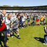 Vagtskiftet ved Marselisborg Slot skærtorsdag kl. 12 tiltrak mange fremmødte, mens politiets indsatsleder undervejs tog sig tid til at besvare spørgsmål fra en nysgerrig dreng.