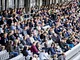 Vagtskiftet ved Marselisborg Slot skærtorsdag kl. 12 tiltrak mange fremmødte, mens politiets indsatsleder undervejs tog sig tid til at besvare spørgsmål fra en nysgerrig dreng.