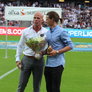 Vagtskiftet ved Marselisborg Slot skærtorsdag kl. 12 tiltrak mange fremmødte, mens politiets indsatsleder undervejs tog sig tid til at besvare spørgsmål fra en nysgerrig dreng.