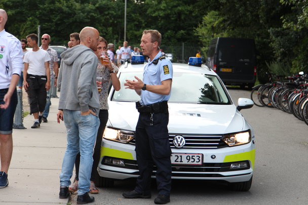 God stemning uden for, før kampen med musik og kolde øl.