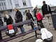Vagtskiftet ved Marselisborg Slot skærtorsdag kl. 12 tiltrak mange fremmødte, mens politiets indsatsleder undervejs tog sig tid til at besvare spørgsmål fra en nysgerrig dreng.