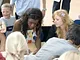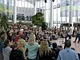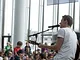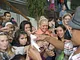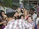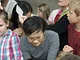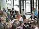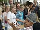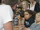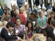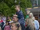 Vagtskiftet ved Marselisborg Slot skærtorsdag kl. 12 tiltrak mange fremmødte, mens politiets indsatsleder undervejs tog sig tid til at besvare spørgsmål fra en nysgerrig dreng.