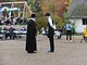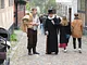 Vagtskiftet ved Marselisborg Slot skærtorsdag kl. 12 tiltrak mange fremmødte, mens politiets indsatsleder undervejs tog sig tid til at besvare spørgsmål fra en nysgerrig dreng.