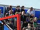 Vagtskiftet ved Marselisborg Slot skærtorsdag kl. 12 tiltrak mange fremmødte, mens politiets indsatsleder undervejs tog sig tid til at besvare spørgsmål fra en nysgerrig dreng.