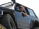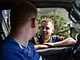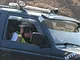 Se 4WD inde fra bilen og se børn fræse rundt på små motorcykler.