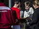 Vagtskiftet ved Marselisborg Slot skærtorsdag kl. 12 tiltrak mange fremmødte, mens politiets indsatsleder undervejs tog sig tid til at besvare spørgsmål fra en nysgerrig dreng.