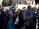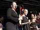 Vagtskiftet ved Marselisborg Slot skærtorsdag kl. 12 tiltrak mange fremmødte, mens politiets indsatsleder undervejs tog sig tid til at besvare spørgsmål fra en nysgerrig dreng.
