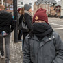 Vagtskiftet ved Marselisborg Slot skærtorsdag kl. 12 tiltrak mange fremmødte, mens politiets indsatsleder undervejs tog sig tid til at besvare spørgsmål fra en nysgerrig dreng.