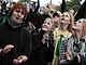 Vagtskiftet ved Marselisborg Slot skærtorsdag kl. 12 tiltrak mange fremmødte, mens politiets indsatsleder undervejs tog sig tid til at besvare spørgsmål fra en nysgerrig dreng.