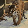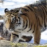 De flotte tigre var en stor oplevelse og de er meget opmærksomme på, at løverne lusker rundt lige udenfor deres midlertidige indhegning.
