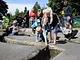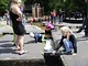 Vagtskiftet ved Marselisborg Slot skærtorsdag kl. 12 tiltrak mange fremmødte, mens politiets indsatsleder undervejs tog sig tid til at besvare spørgsmål fra en nysgerrig dreng.
