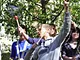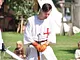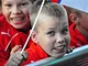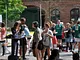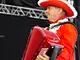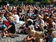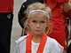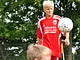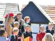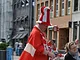 Vagtskiftet ved Marselisborg Slot skærtorsdag kl. 12 tiltrak mange fremmødte, mens politiets indsatsleder undervejs tog sig tid til at besvare spørgsmål fra en nysgerrig dreng.