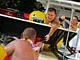 Vagtskiftet ved Marselisborg Slot skærtorsdag kl. 12 tiltrak mange fremmødte, mens politiets indsatsleder undervejs tog sig tid til at besvare spørgsmål fra en nysgerrig dreng.