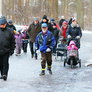 Traditionen tro klippede Flemming Knudsen startsnoren over til årets julemærkemarch i Århus. Mange havde trods det kolde vejr meldt sig til marchen for at støtte det gode formål. Selvom det var meget glat meldes der ikke om alvorlige uheld på turen.