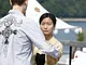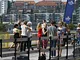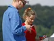 Vagtskiftet ved Marselisborg Slot skærtorsdag kl. 12 tiltrak mange fremmødte, mens politiets indsatsleder undervejs tog sig tid til at besvare spørgsmål fra en nysgerrig dreng.