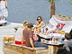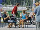 Strandbaren på Århus Havn er blevet et fristed og åndehul som specielt nydes når solen gider skinne. I dag var der igen undervisning i Argentinsk Tango. Deltagerne så ud til at nyde musik, dans, sol og den friske havluft med et kig ud over Århus Bugten