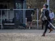 Vagtskiftet ved Marselisborg Slot skærtorsdag kl. 12 tiltrak mange fremmødte, mens politiets indsatsleder undervejs tog sig tid til at besvare spørgsmål fra en nysgerrig dreng.